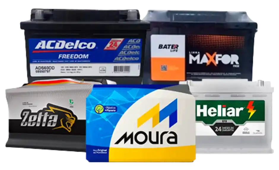 Trabalhamos com as principais marcas de baterias automotivas — Moura, Heliar, Zetta e ACDelco — atendendo carros, motos e caminhões.